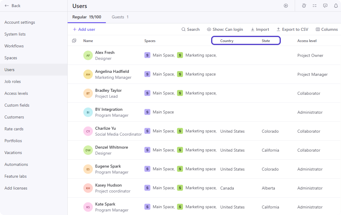 Go to Company settings → Users. Once these fields are filled in, the system can match users with the correct local holidays. If a user‘s region is updated later, workloads and time logs are recalculated automatically.